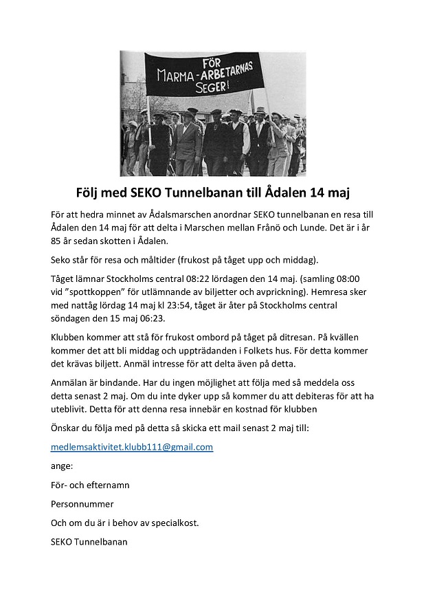 SEKO Tunnelbanan uppmanar alla sina medlemmar och alla arbetare att demonstrera och visa sin styrka den viktiga dagen för oss inom arbetarklassen!