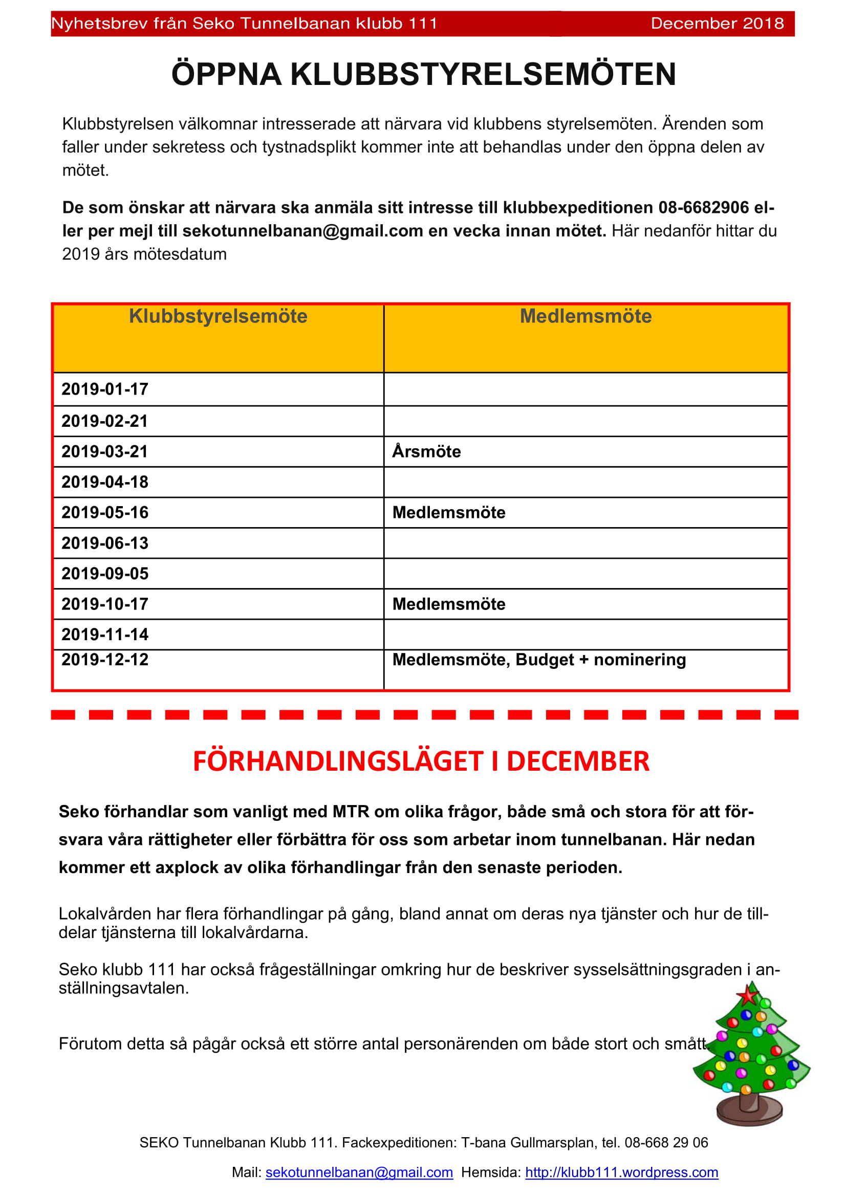 Information om förhandlingar 27 december 2018