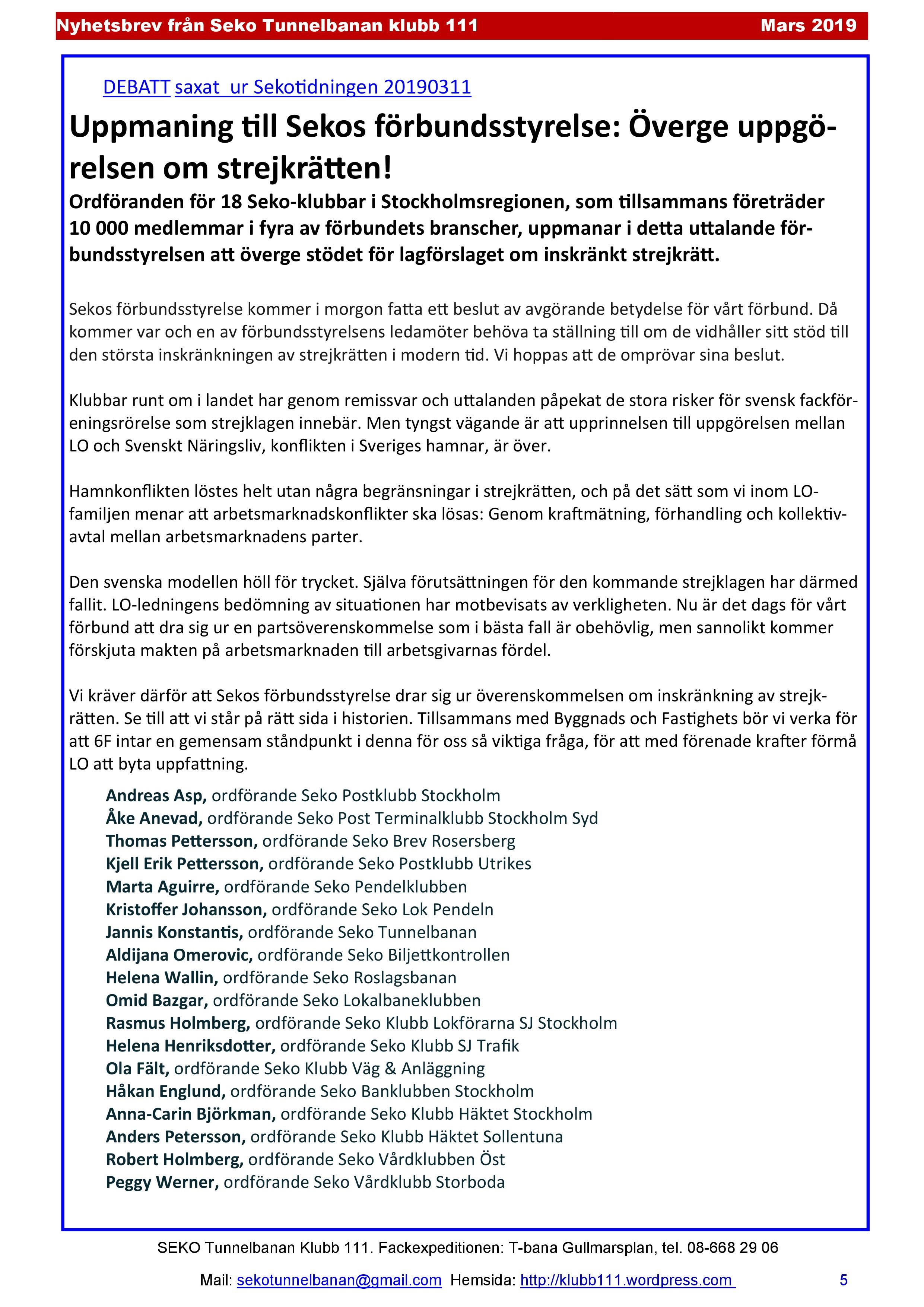Här kan du läsa Seko Tunnelbanans Klubb Nytt Mars 2019.
