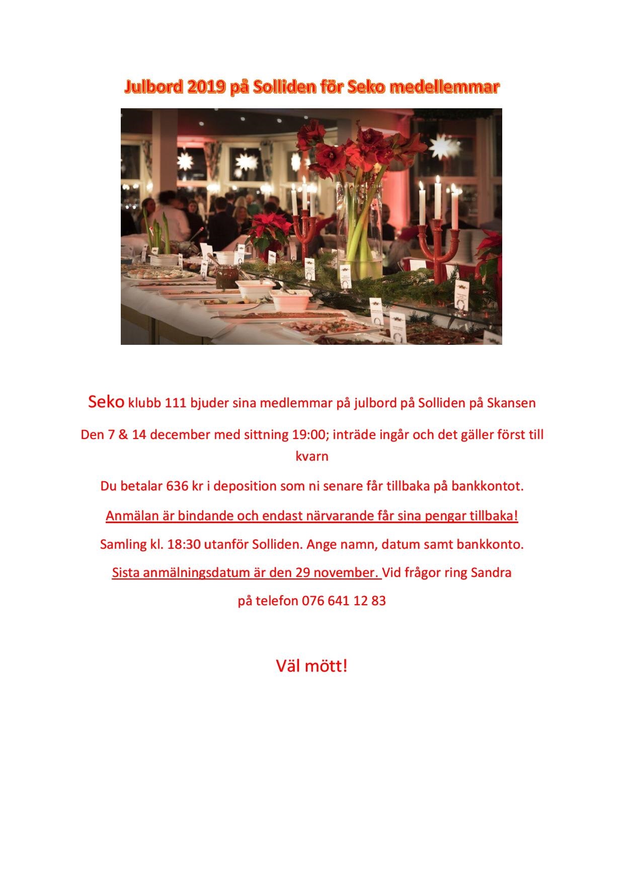 2. Julbord 2019 på Solliden för Seko medellemmar