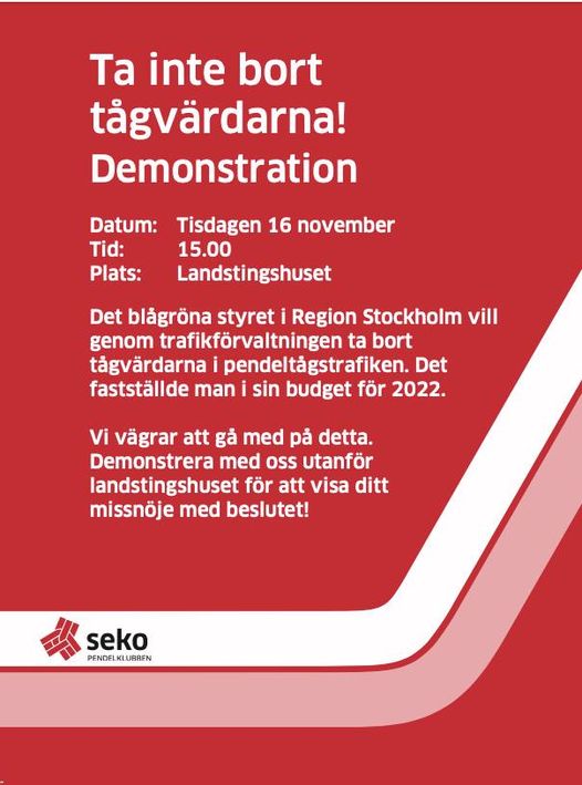 Klubben deltog i demonstration tisdagen den 16/11 kl. 15.00 utanför Landstingshuset, i kampanjen om ”Rör inte min tågvärd” för att visa vår solidaritet till våra kamrater på pendeltåg.
