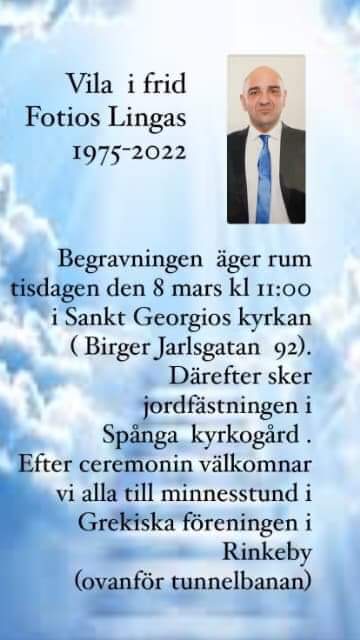 Klubben deltog på Fotios Lingas begravning den 8 mars och lämnade en krans. Ca 10 st medlemmar var närvarande.