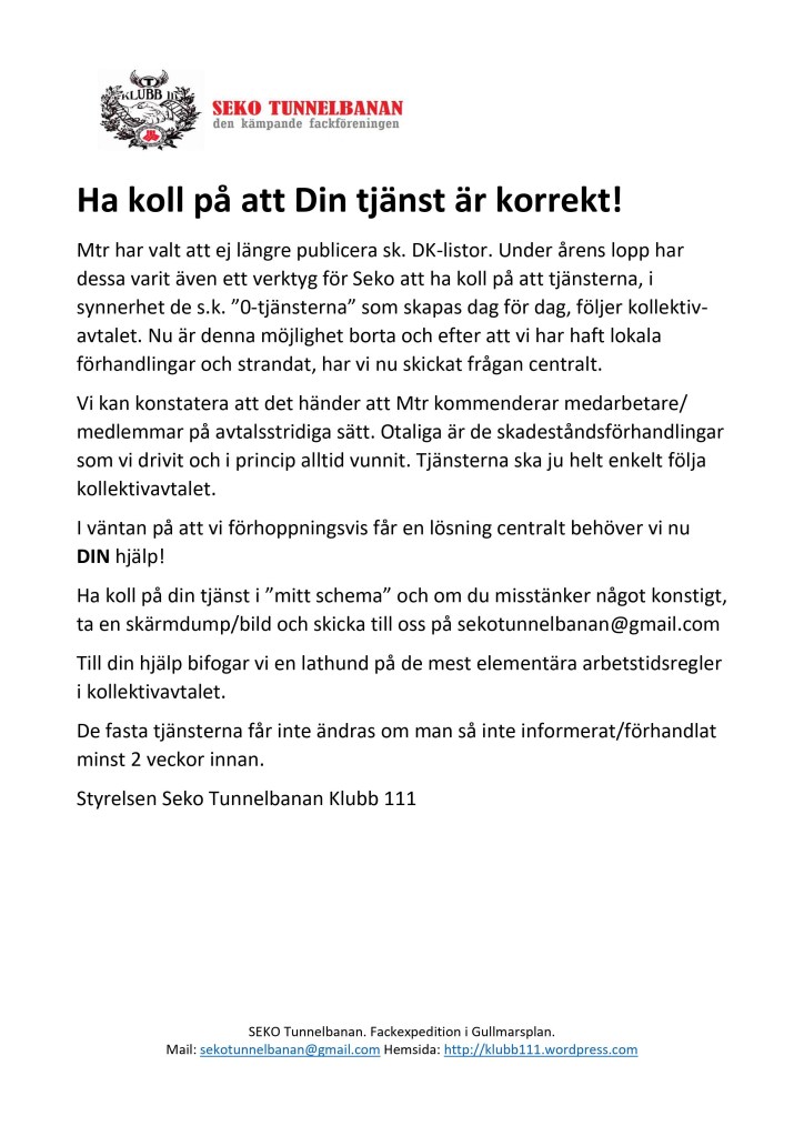 Har du frågor eller funderingar, kontakta Seko Tunnelbanan på sekotunnelbanan@gmail.com