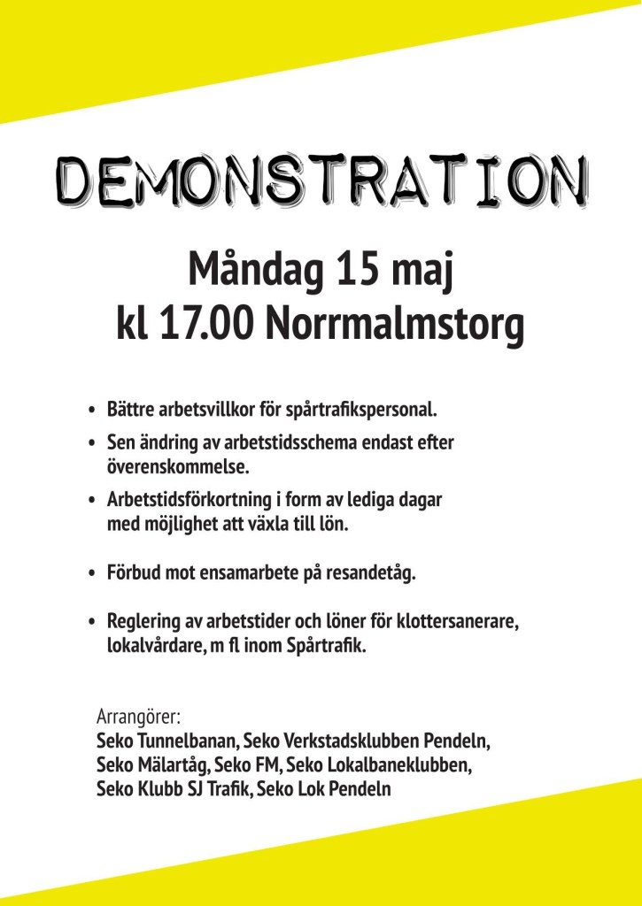 Demonstration måndagen 15 maj kl 17.00 Norrmalmstorg