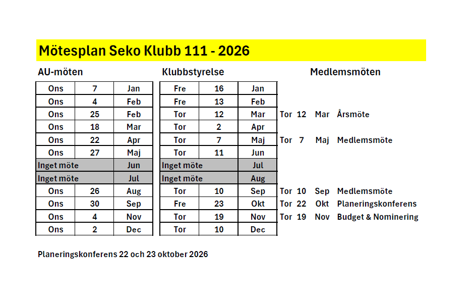 Märk väl att förhandlingsgruppen (gruppen som förbereder samt tar ställning till olika förhandlingar i Klubben har möte på onsdagar varje vecka.