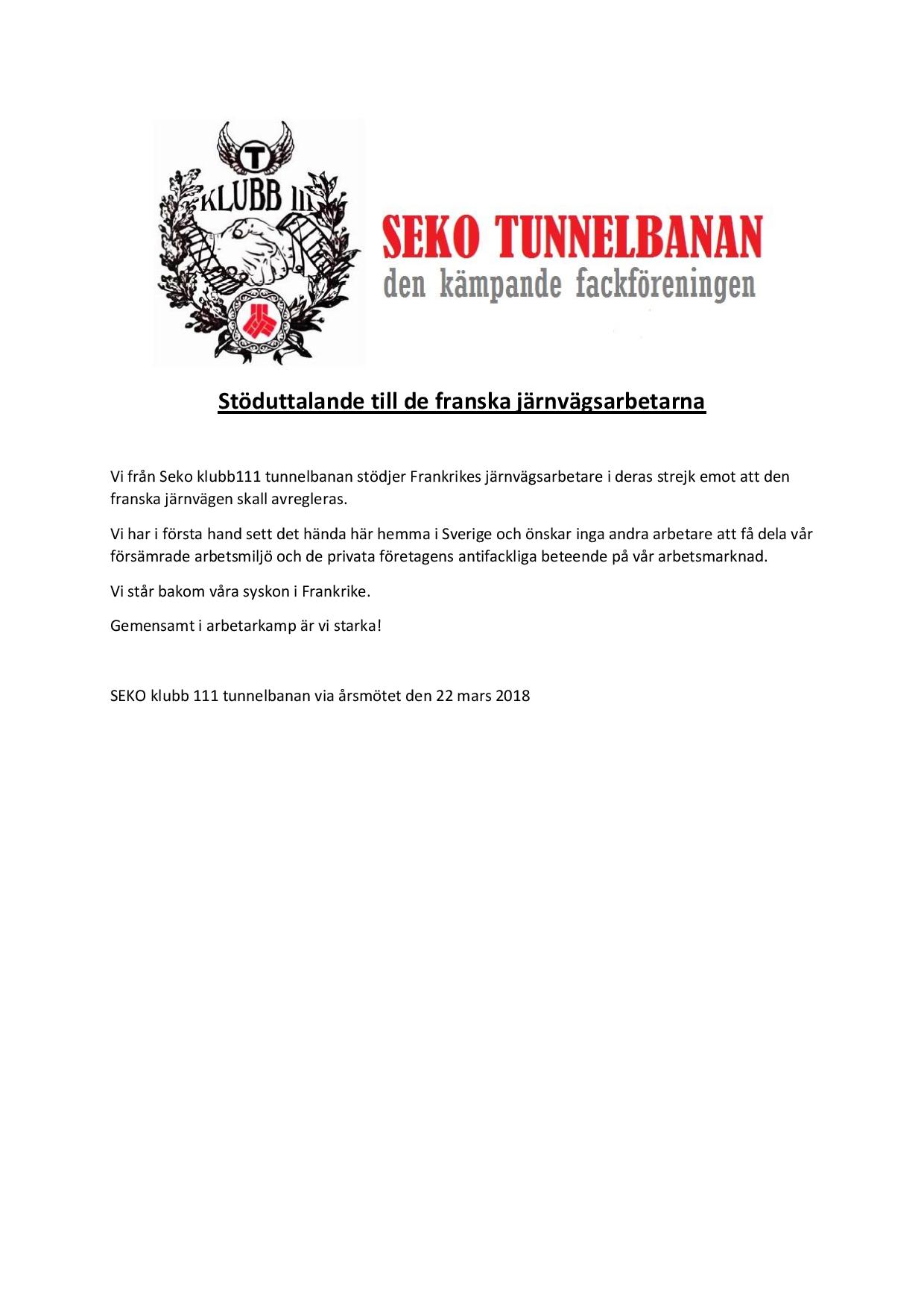 Seko Tunnelbanan hade årsmöte i torsdags den 13 mars. Många medlemmar deltog i livliga diskussioner.